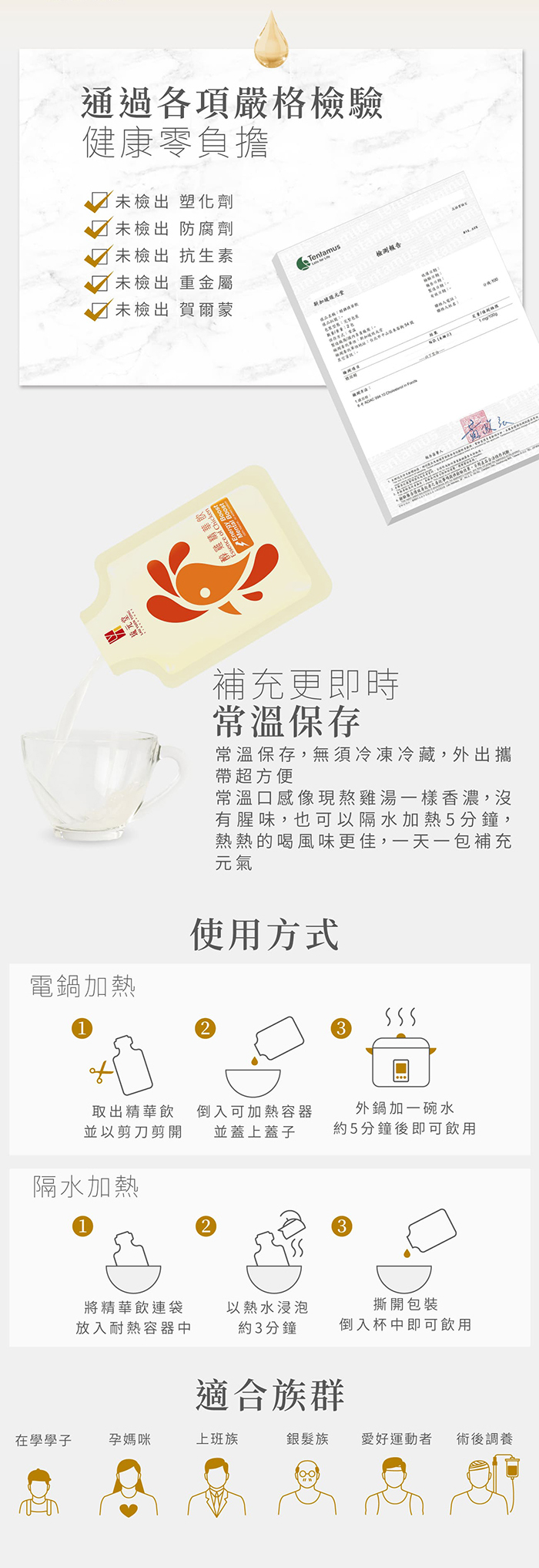 原型食物的營養更加完整釋放,熬出更多的必需胺基酸、蛋白質,與傳統滴雞精相比,更多了鈣質營養,是滴雞精升級版,替您守護最愛家人的健康!