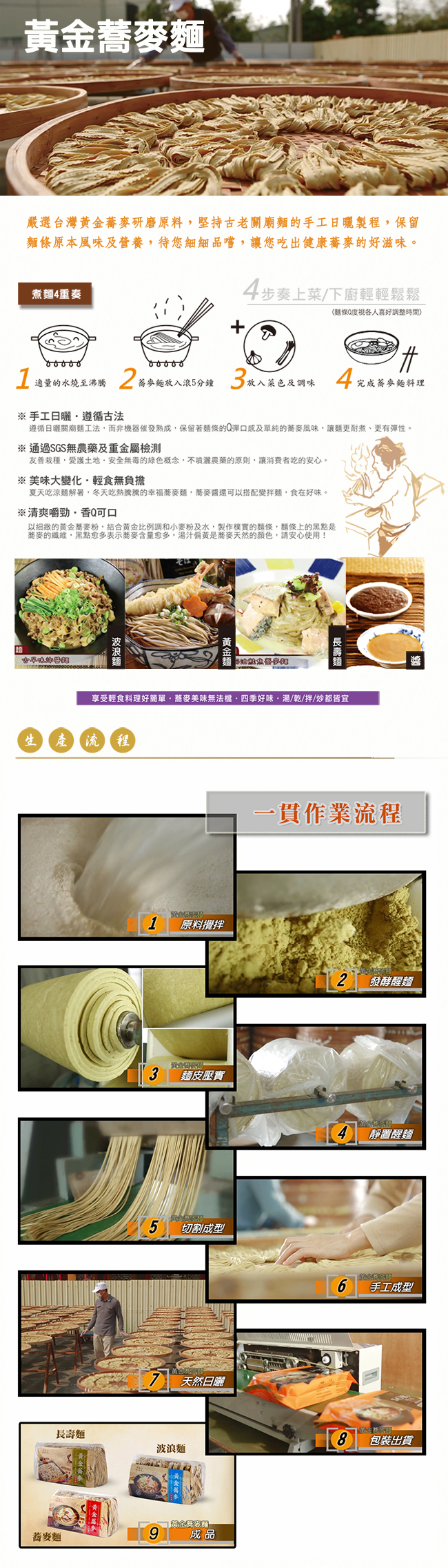 以嚴選黃金蕎麥粉,結合小麥粉及水,製作樸實的麵條,